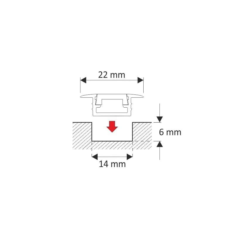Dzięki bardzo płytkiemu montażowi profil wygląda dyskretnie po zamontowaniu, idealnie nadając się do oświetlenia w meblach oraz płytach G-K.