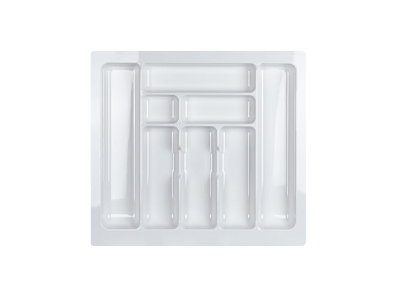 Wysokiej jakości wkład na sztućce do szuflady, wykonany z tworzywa sztucznego o grubości 2mm. Wkład umożliwia efektywne zagospodarowanie szuflad kuchennych według indywidualnych potrzeb każdego klienta. Uwypuklenia na obwodzie usztywniają całość konstrukcji wkładu. Proste ułożenie komór zapewnia ład i harmonię. Szerokie, proste przegrody ułatwiają utrzymanie czystości