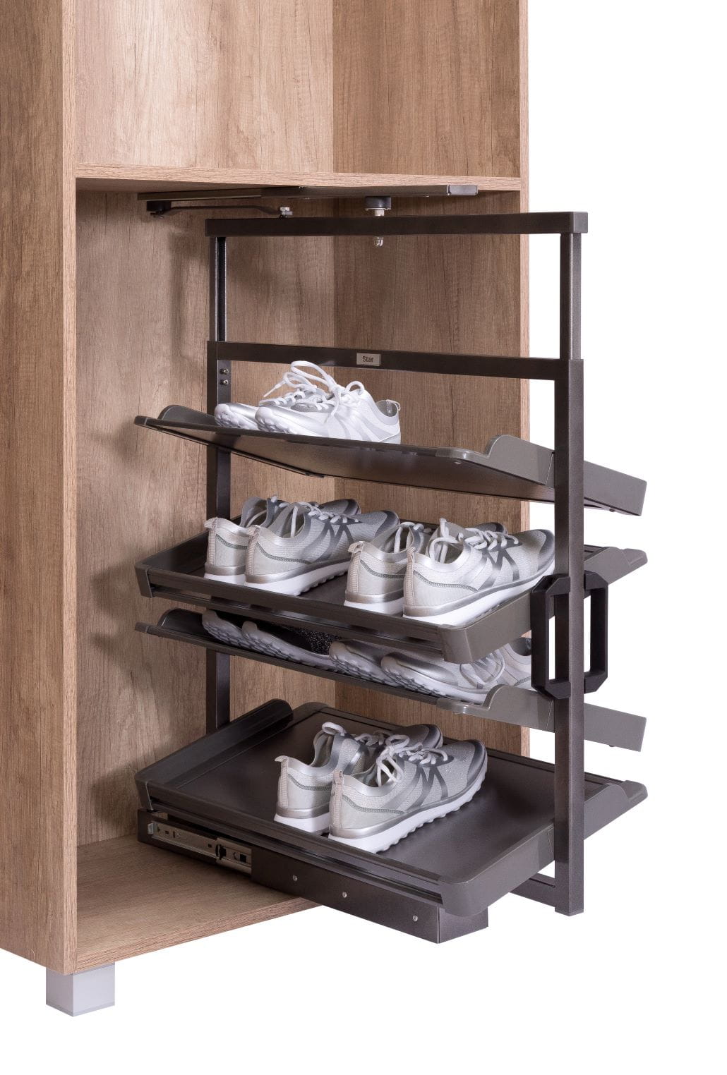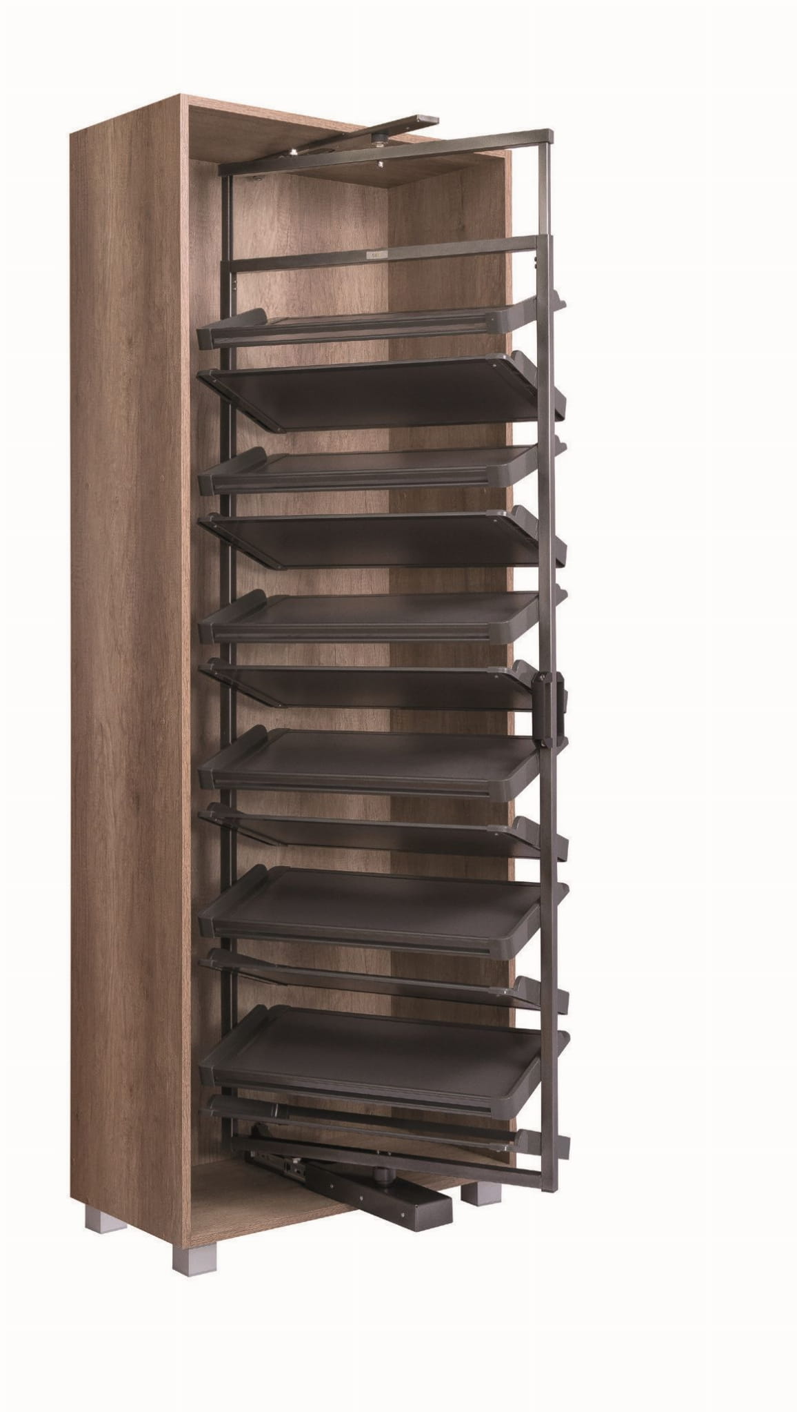 Regał Obrotowy na buty umożliwia najlepsze zagospodarowanie przestrzeni w garderobie - pozwala na umieszczenie na niewielkiej przestrzeni kilkudziesięciu par butów.